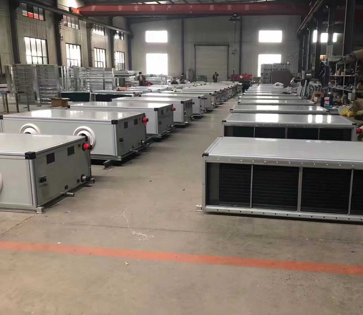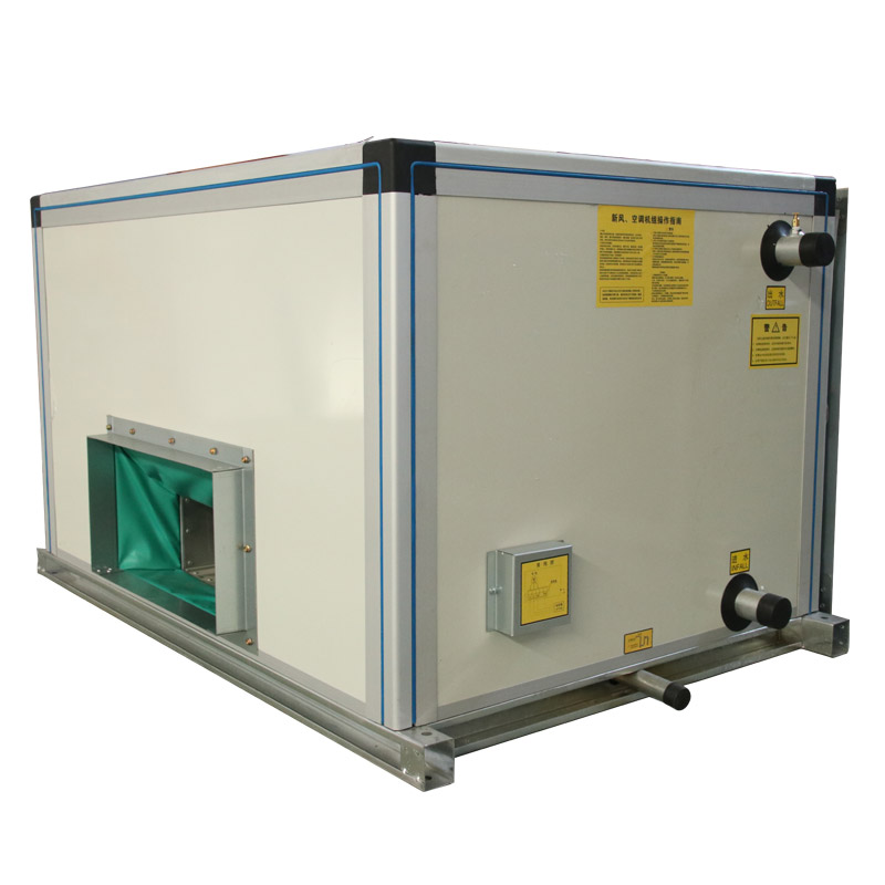 吊頂式空調機組(Ceiling air conditioning units),它是由混風段、過濾段、表冷段、加濕段、風機段組成,由冷凍水經蒸發器蒸發,通過風機進行換熱轉換而成。